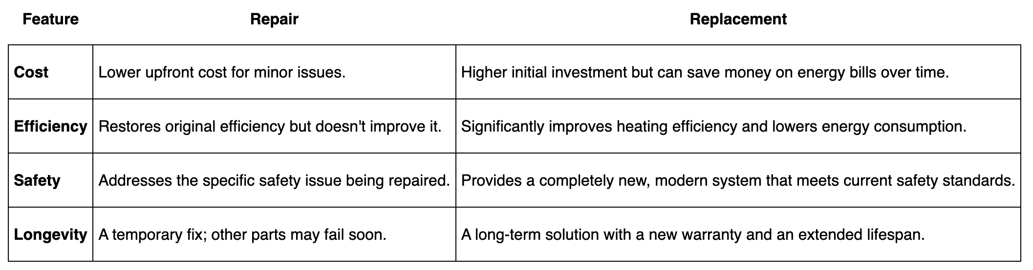The decision often comes down to a balance between the age and condition of your current unit, the cost of repairs versus a new installation, and, most importantly, safety.